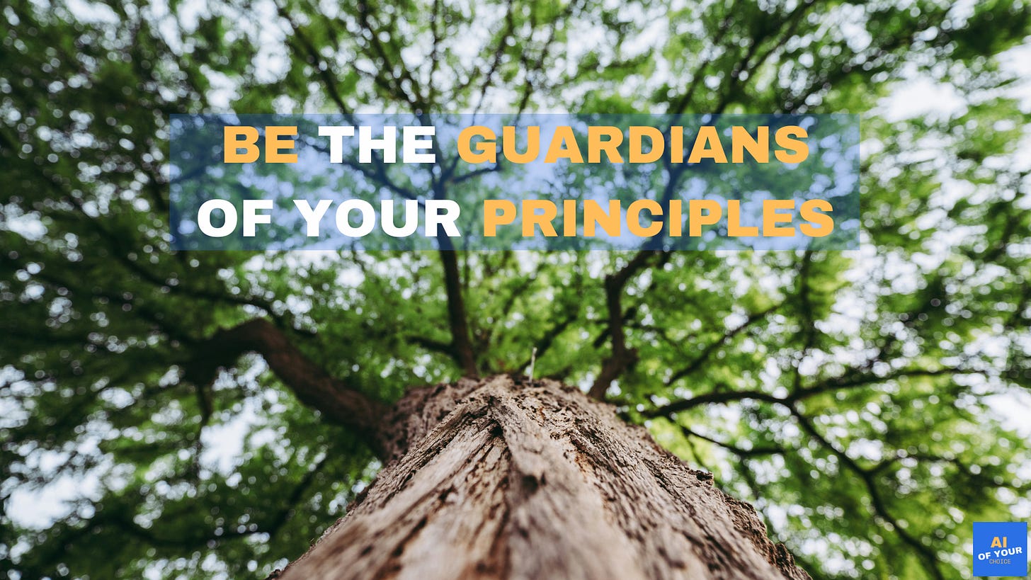Each entity will have their own Responsible AI principles, coming from bottom to up. As we will be part of this continuous conversation in safe spaces that we have built in each entity, we will be able to embody them with our unique stories, symbols. That is why each of us will become Guardians of these principles, in these new entities, fresh after spring cleaning, far away from being perfect, but they will be ours, where we would feel good about being part of.